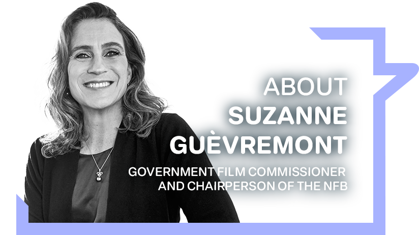 Suzanne Guèvremont became Government Film Commissioner and Chairperson of the NFB in November 2022. She is the third woman and first Francophone woman to hold this position.